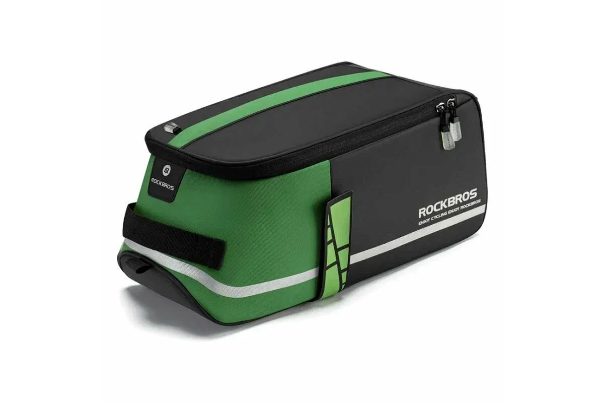 Бренд ROCKBROS Модель Сумка ROCKBROS. На багажник с зеленой вставкой Год Без года Вес 550 г Влагозащита Влагозащитная Способ крепления На липучку Габариты 38х18х18 см - Загрузка..